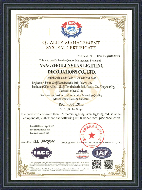 Yangzhou Jinyuan Lamps Co., Ltd, which is affiliated with Jinshang Electric Group, is one of the professional provincial large-sized production, design, and engineering companies in the industry of road illumination in China. Since established from 2002, our products, which focus on street light poles, led street light, solar street light, light fixtures, etc., are highly appreciated by customers in domestic and overseas.